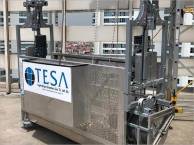 Çalışma esnasında, sistemin binaya zarar vermeden seri kullanılabilmesi için teras kata ray döşenmektedir.